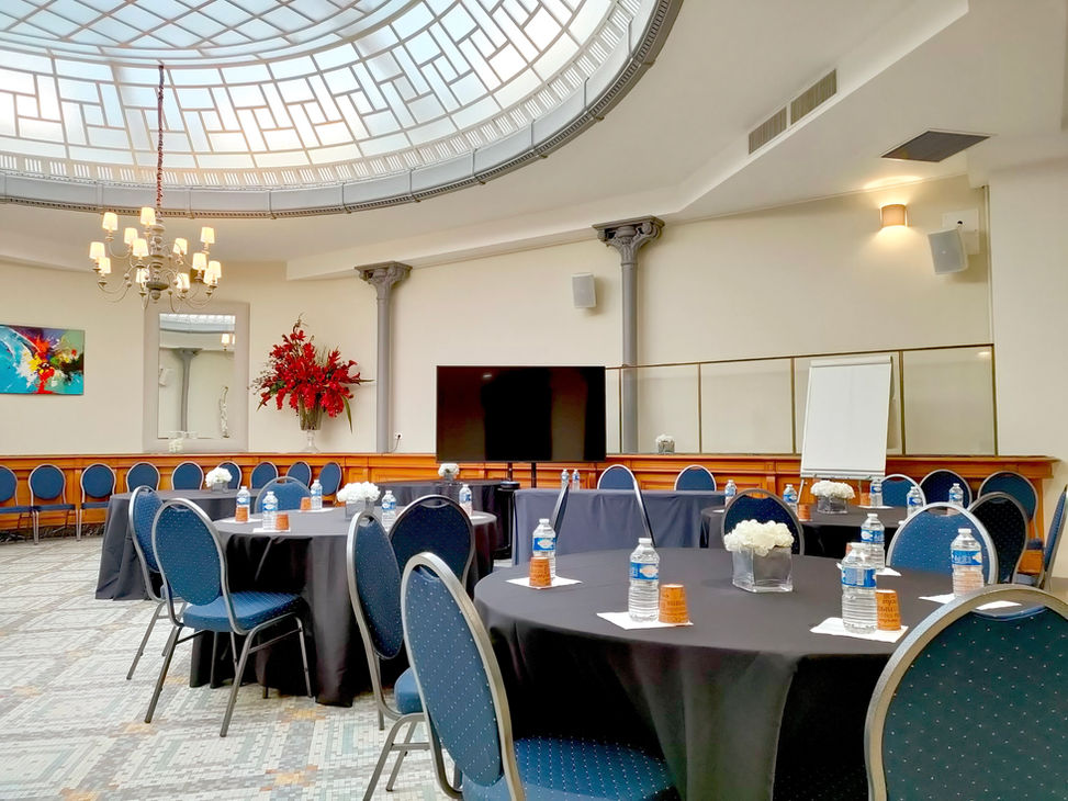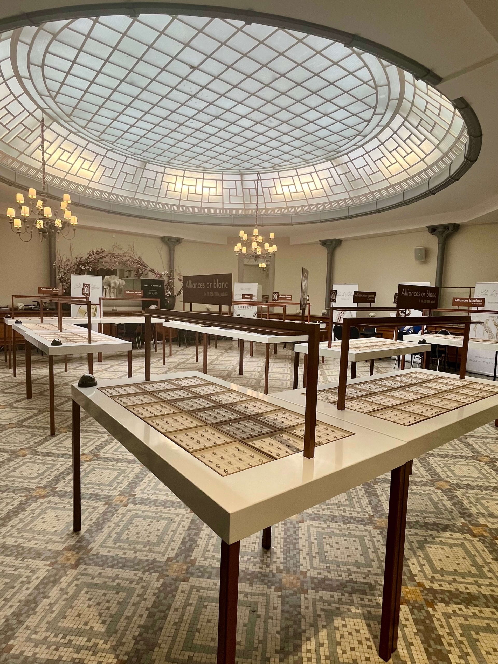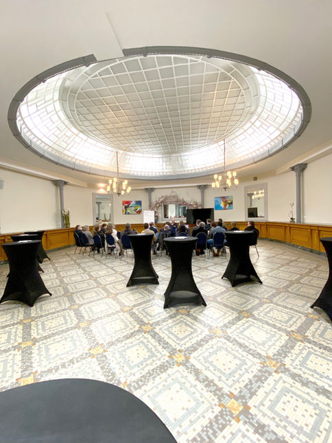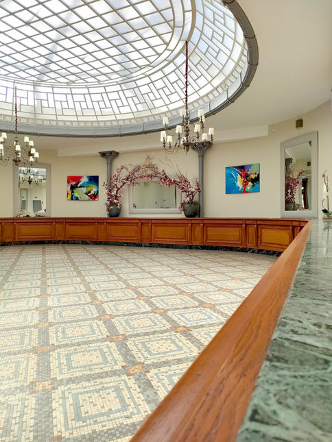 Ancien hall d'accueil principal de la Banque de France, la salle de La Rotonde a conservé plusieurs éléments de charme atypiques et élégants : son long comptoir en chêne massif recouvert de marbre vert, son sol en mosaïque colorée d'époque ainsi que la verrière monumentale baignant l'espace de lumière naturelle. ​